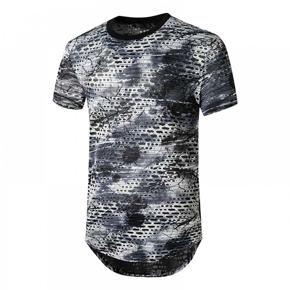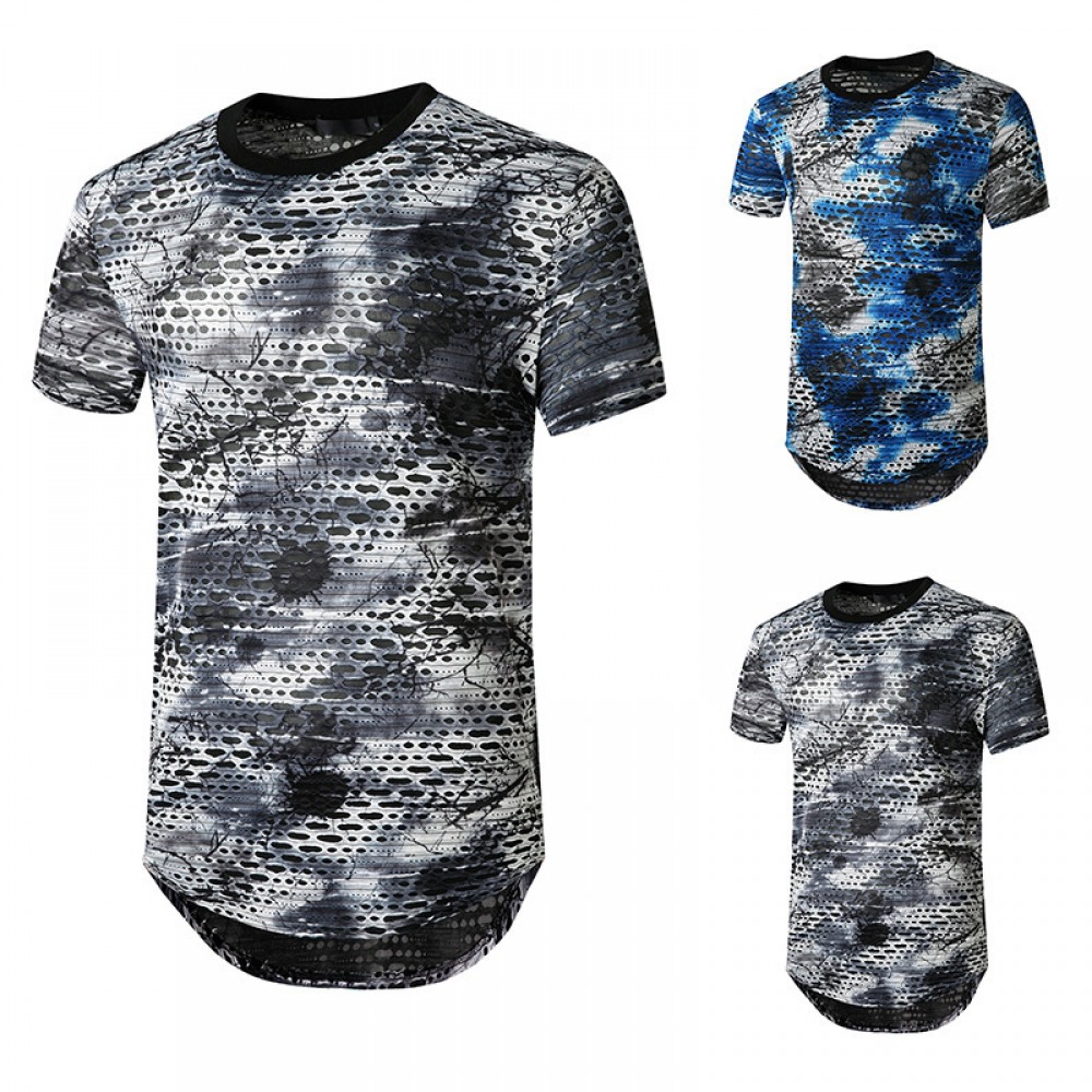 Summer New Style Splash Paint Ink 3D Printing Men's Rainbow Round Neck Short Sleeve T-Shirt