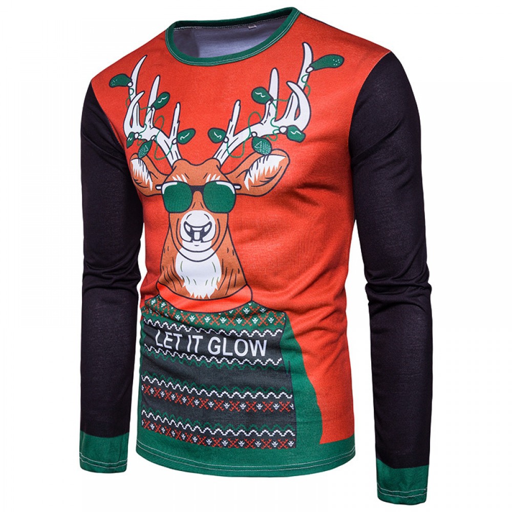 New Style Men's Personality Christmas Elk 3D Printing Round Neck Long Sleeve T-Shirt