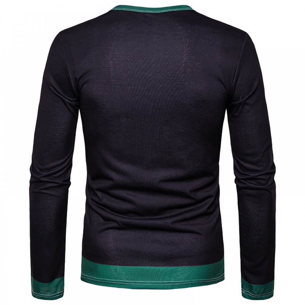Spring New Fashion 3D Printing Men's Bow Tie Round Neck Long Sleeve T-Shirt