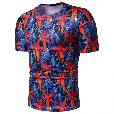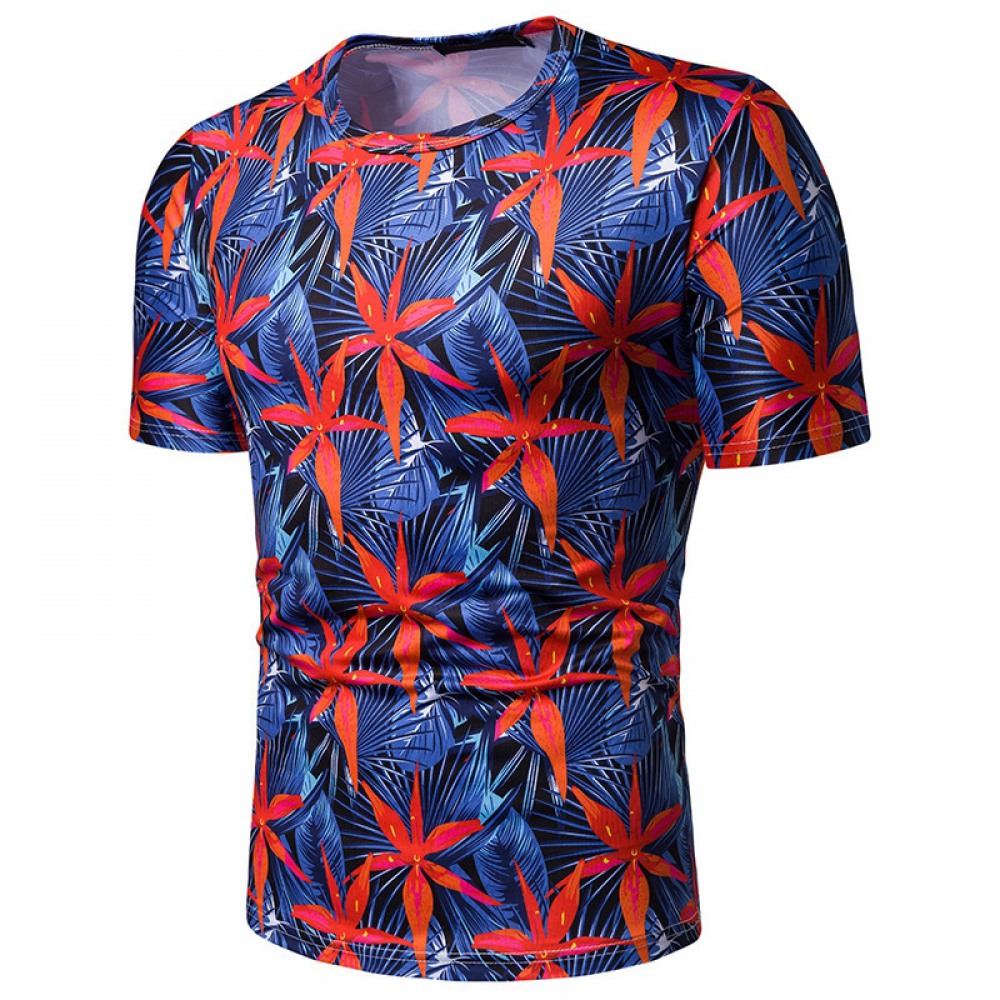 New Summer Men's Beach Style Printed Short-Sleeved T-Shirt