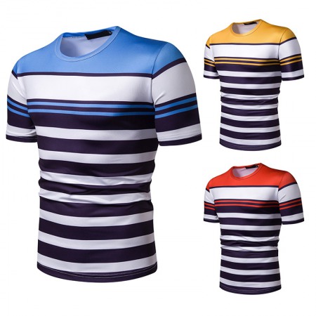New Summer Men's Short-Sleeved T-Shirt Mens Contrast Striped Slim Casual T-Shirt