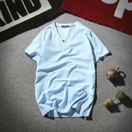 New Year New Cotton and Linen Summer Short-Sleeved T-Shirt Men's Retro V-Neck Large Size Men's Thin T-Shirt