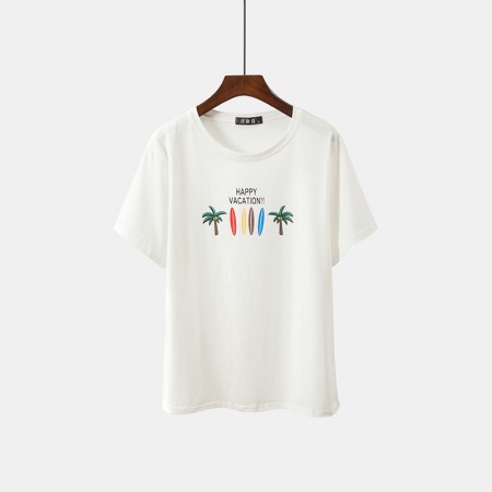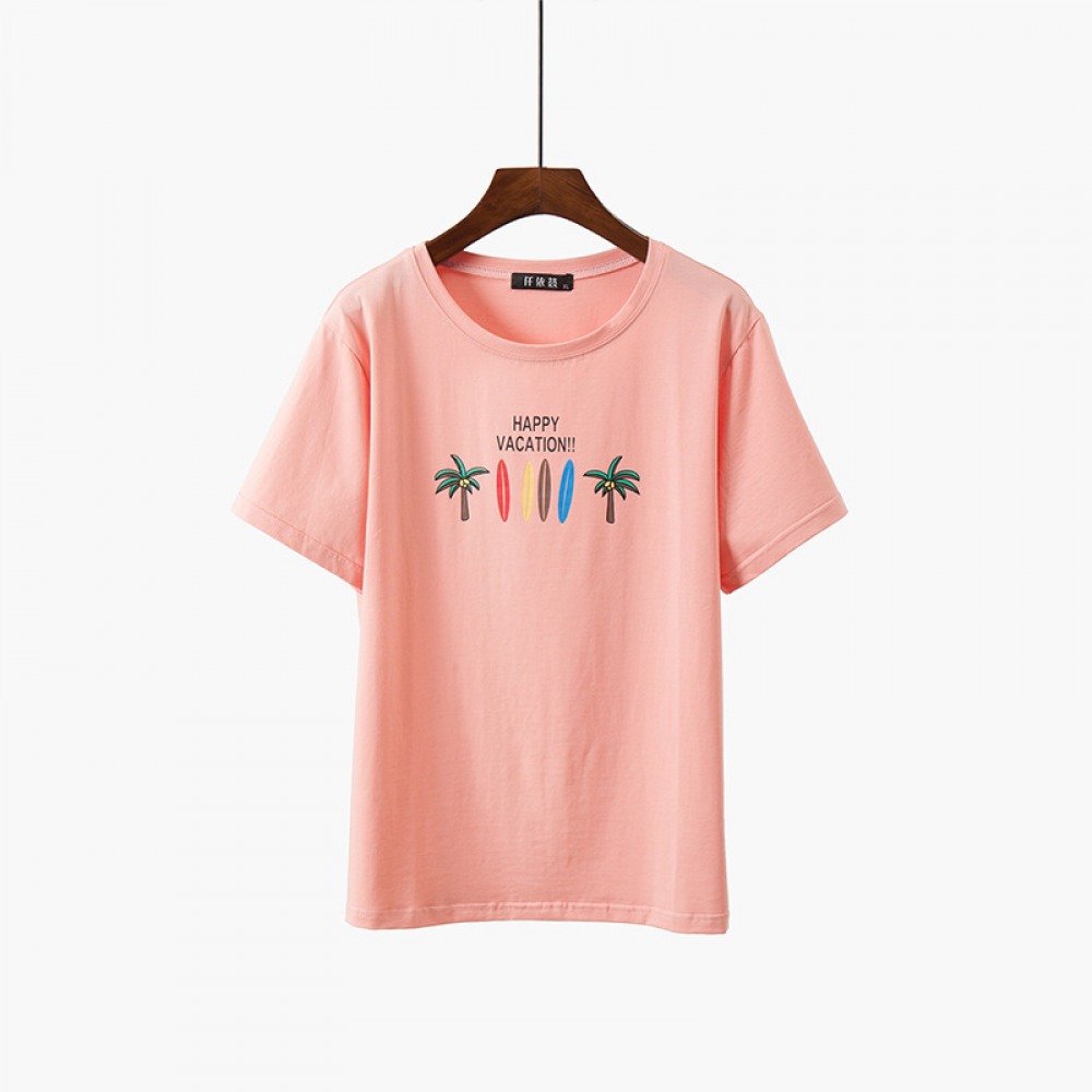Fat Plus Size Women's Pure Color Wild Thin Love Printing Short-Sleeved T-Shirt Women