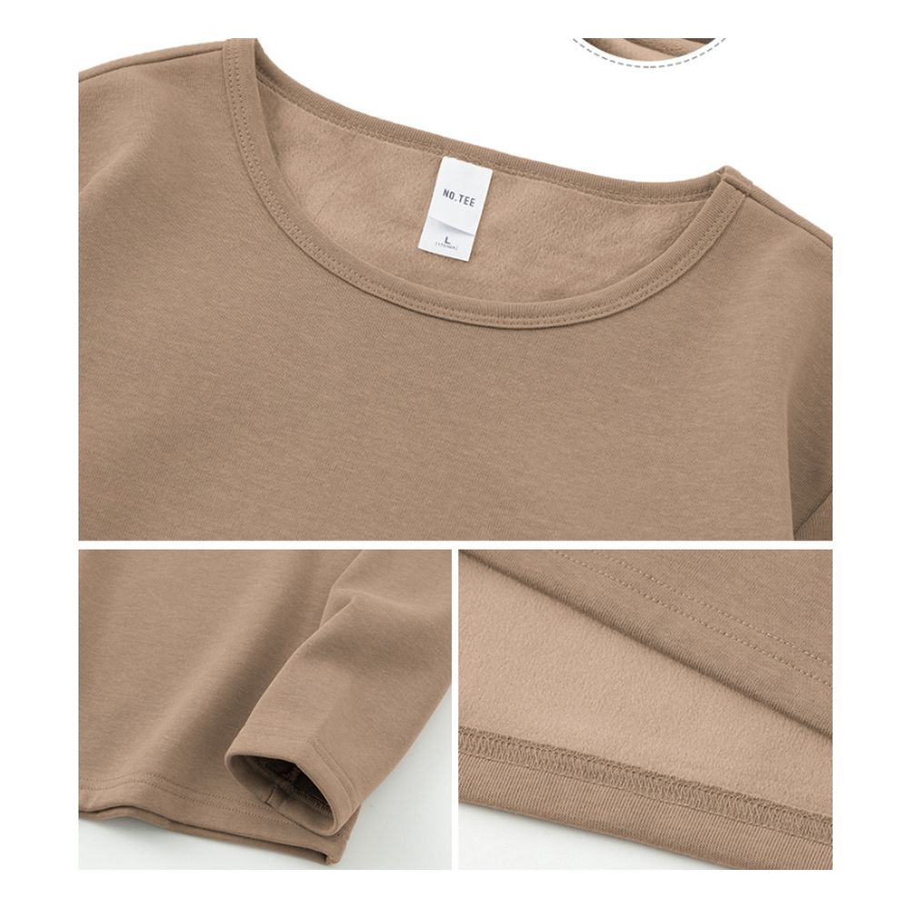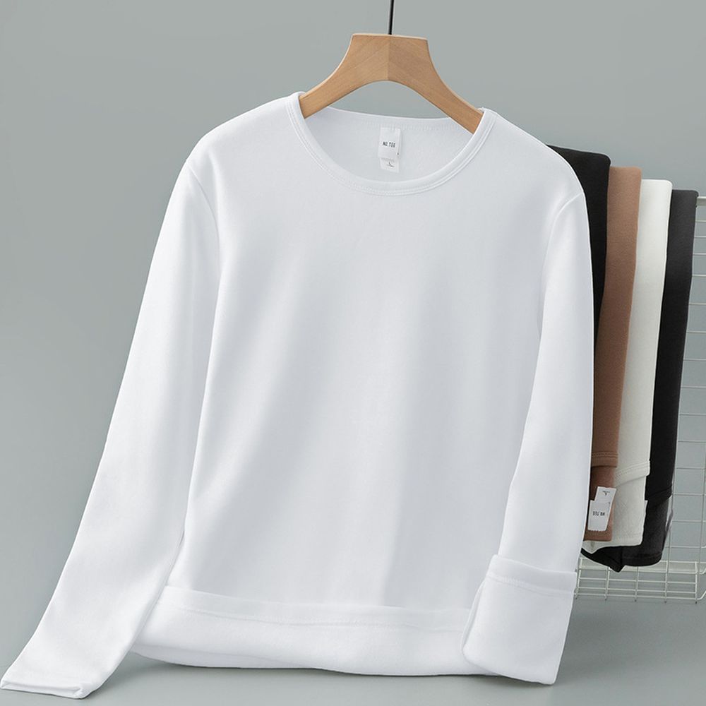 Round Neck Long-Sleeved T-Shirt Men's Trendy Inner Wear Plus Velvet Thickened Warm Base Layer Solid Color